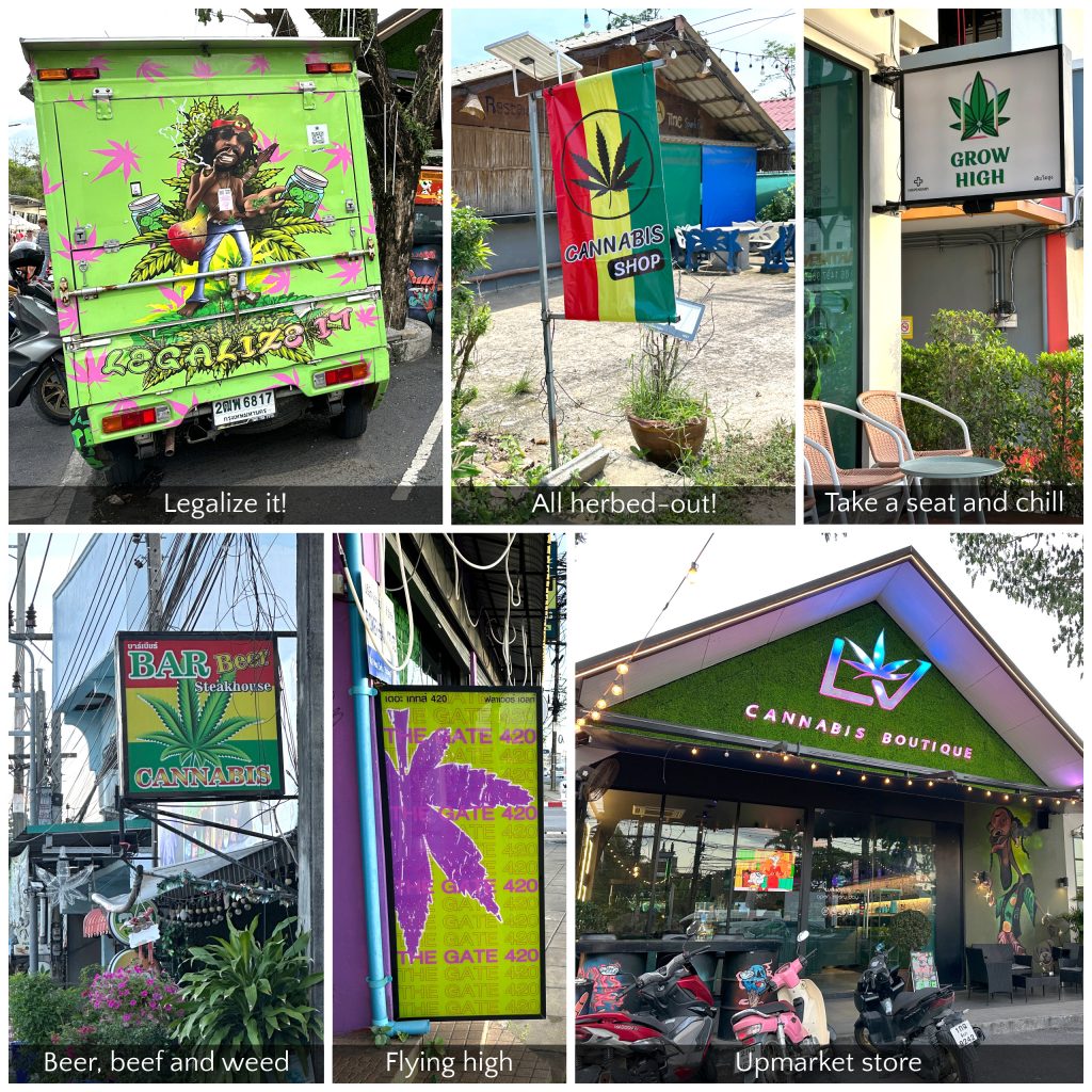 We were blown away by the number of cannabis outlets on offer across Phuket, available and openly advertised on what felt like every street corner. Maybe it’s just their relaxed way of living, but not seeing this in the UK naturally stood out as something different. “Pass the Dutchie…yea maan”