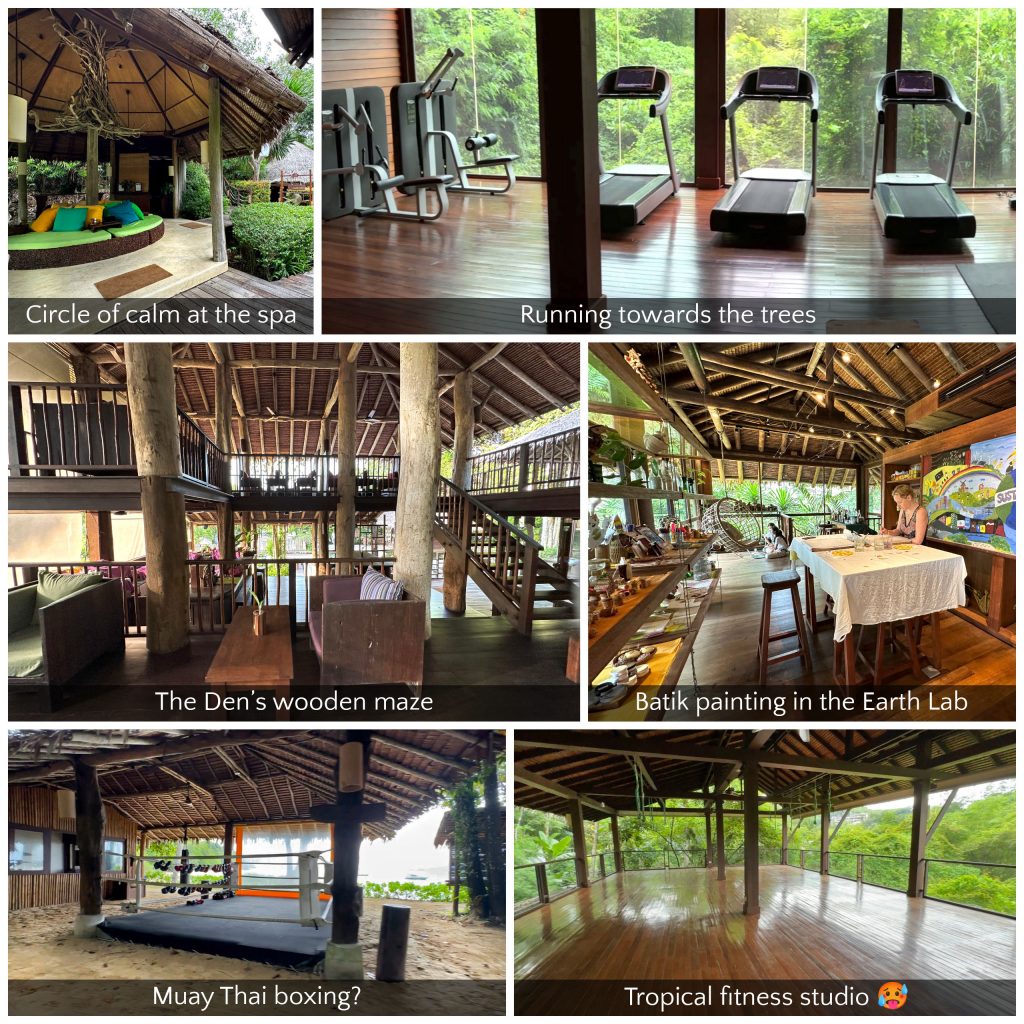 Inside the all on-site buildings you’re left with a sense of the outdoors in. That’s partially due to the building materials used, but also the display of the outdoors in. The gym overlooks the forrest, the spa is umberellad into the landscape and the den looks like one giant treehouse. I made good use of the gym and I partook in Batik painting – a nice chilled out afternoon in the sustainability lab.