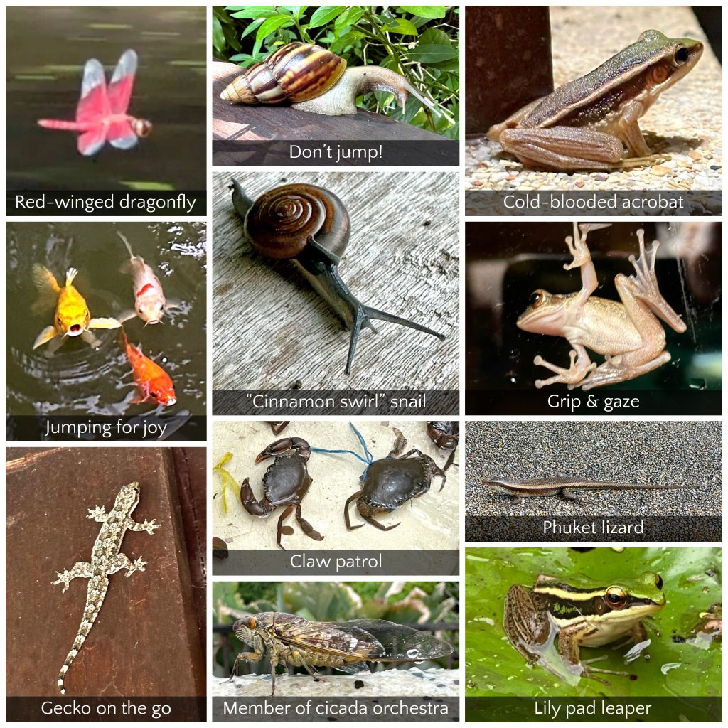 Having nature everywhere is just part and parcel of Phuket. The vibrant tropical plants, intense colours, and plenty of reptilian creatures. We captured a few in our collages below