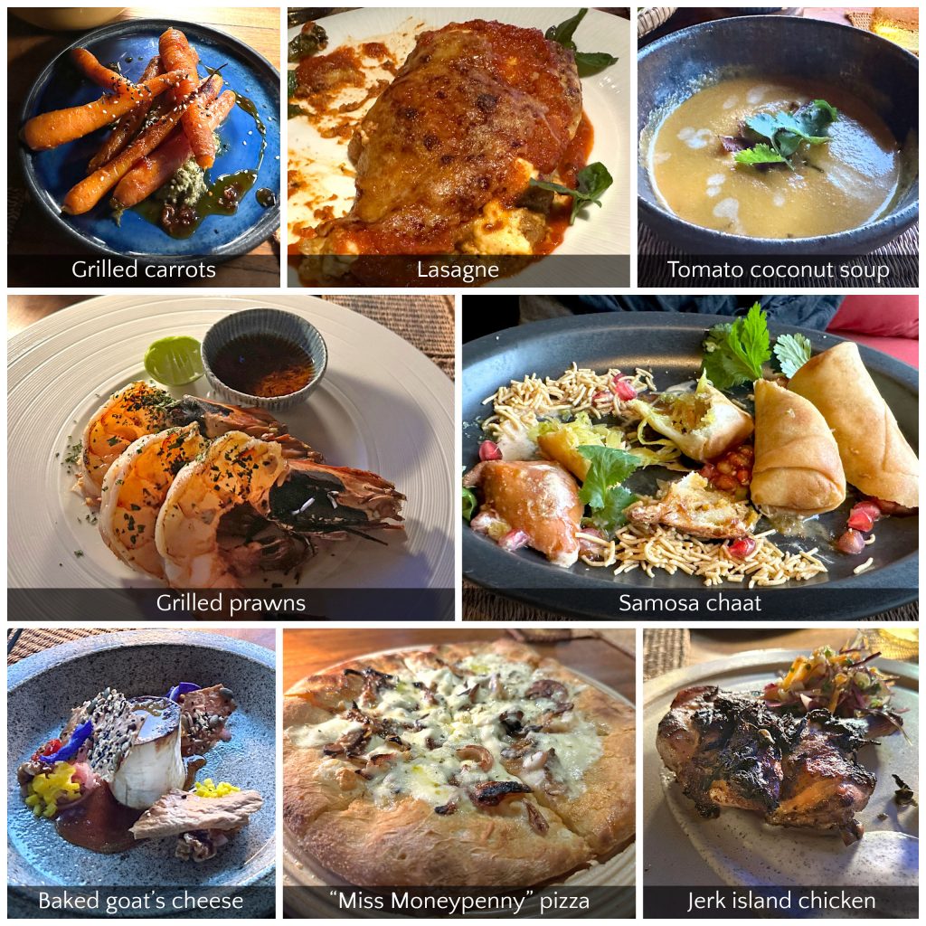 We ate in the Lounge and at the Hilltop a couple of evenings – but were susceptible to the mosquitoes at both. That said, let me be clear, the food was still not to be sniffed at. We ate a mixture of dishes, from lasagnas and pizzas to samosas and jerk chicken. I can’t fault the quality or the ambience of either restaurant.